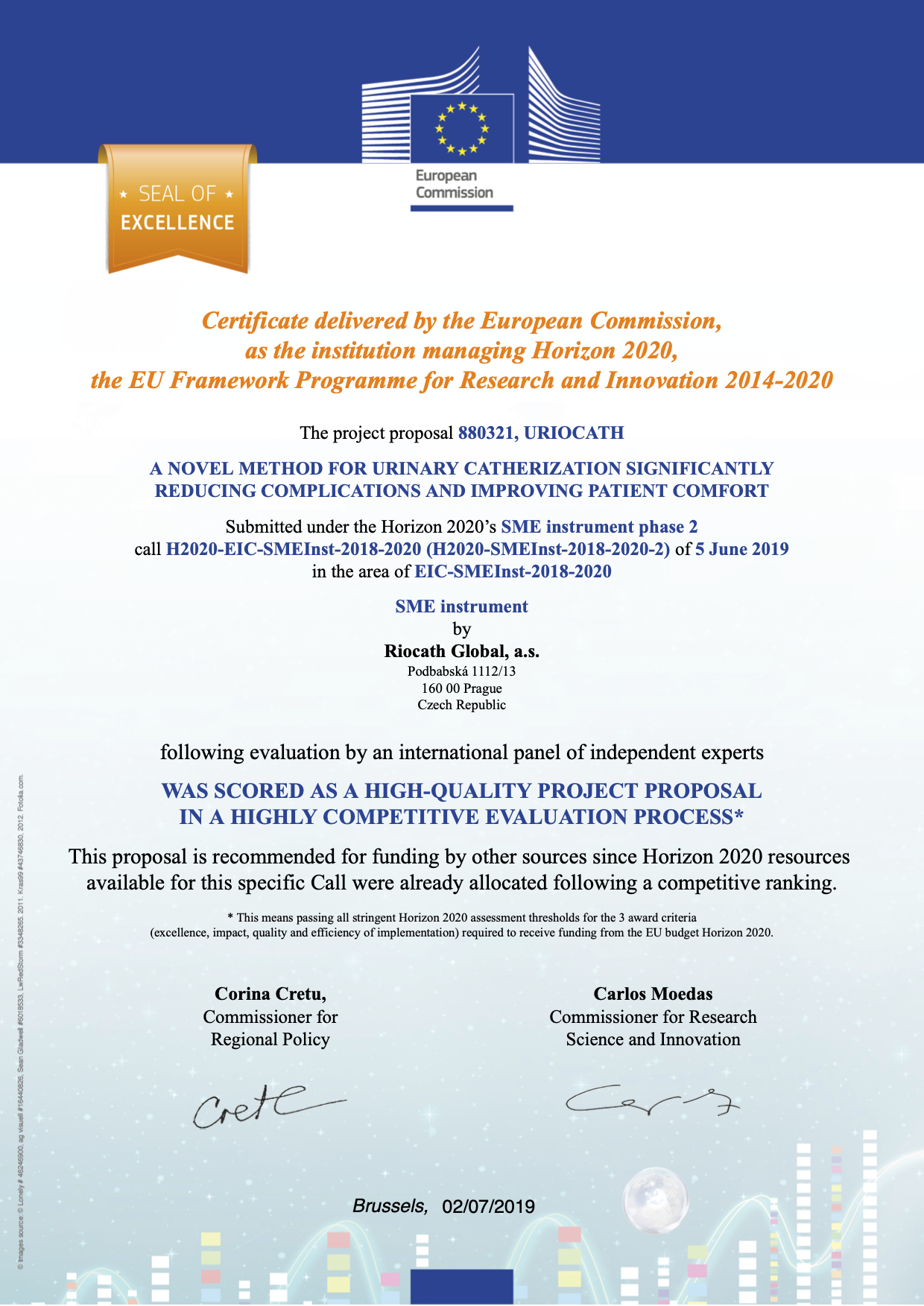 Založení společnosti RIOCATH RECTAL TUBE a.s., dceřiné společnost firmy Riocath Global a.s. Zároveň jsme součástí holdingu Riocath.